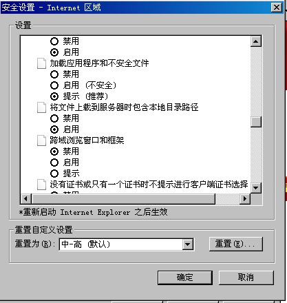 找到安全项点击自定义级别 找到将文件上载到服务器时包含本地目录路径,改成 启用 2,图片为:CMYK格式上传不了,图片大于150KB的也上传不了 |